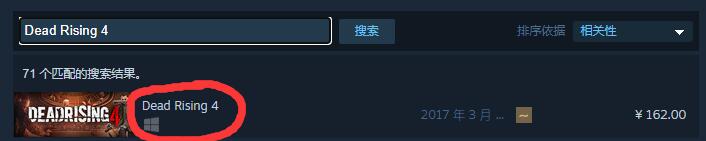 1,首先进入steam搜索Dead Rising 4,点击下方的一个游戏。