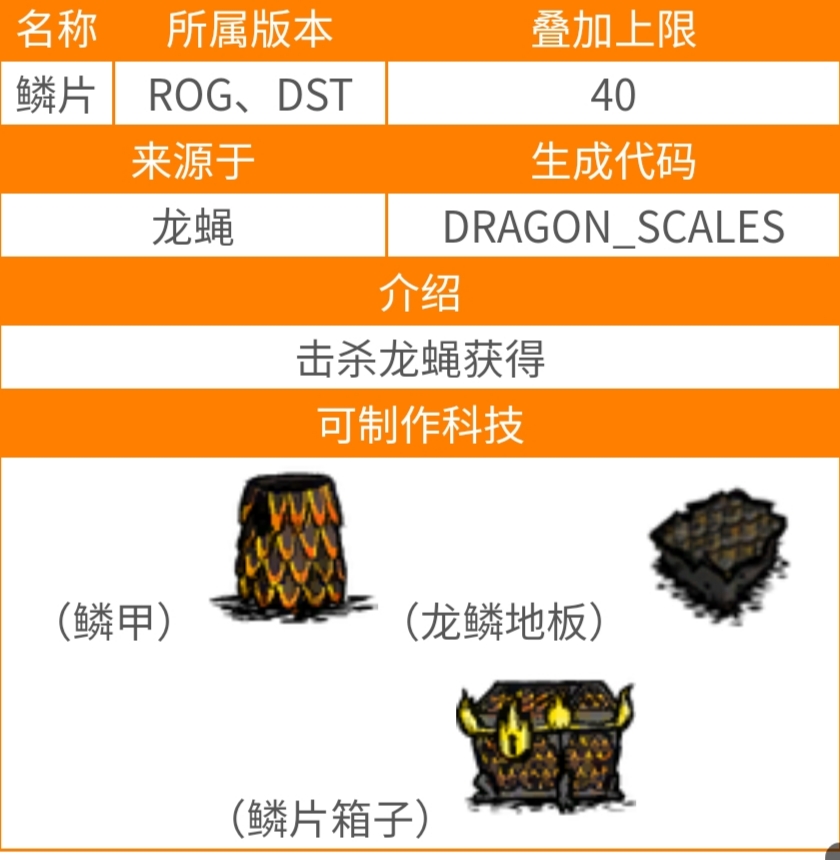 饥荒鳞片代码是DRAGON_SCALES,可以击杀龙蝇获得。