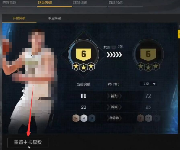 4、进入球员突破界面,点击刚刚买回来的那个球员