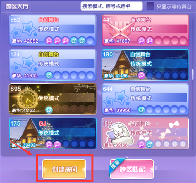 在游戏大厅里创建一个房间,模式和房间样式没有要求。
