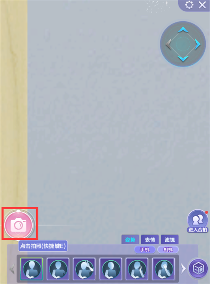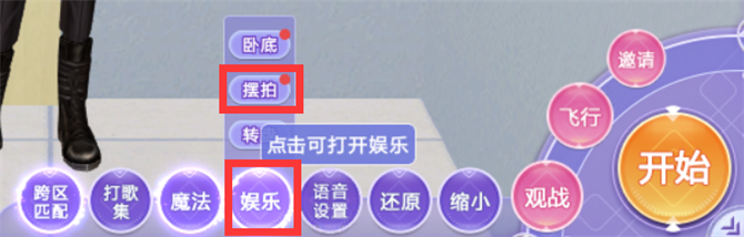 进入房间后点击右下角娱乐,娱乐菜单上的摆拍。
