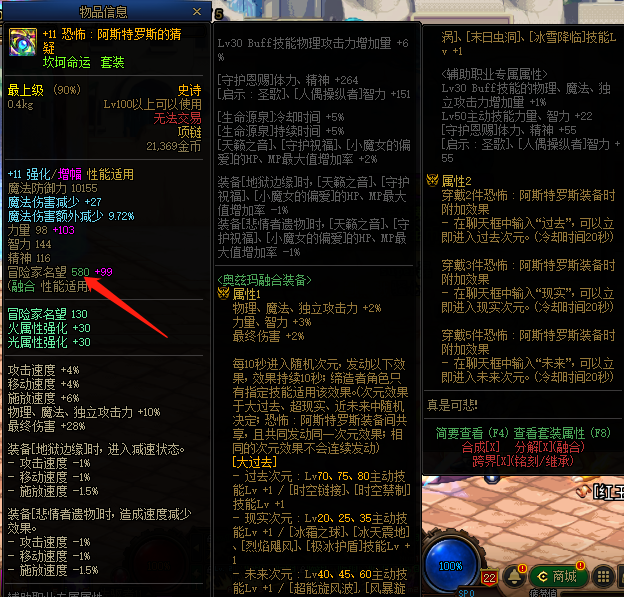 在地下城与勇士里,未强化/增幅过的奥兹玛装备的基础名望值加成为580点,可使用强化/增幅、勋章或者宝珠来增加名望值加成。