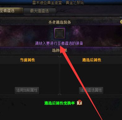 将需要赋予遴选属性的武器放入装备槽中