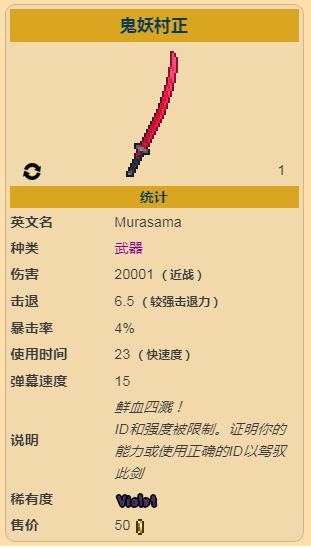 以下就是泰拉瑞亚鬼妖村正id的详细介绍,希望可以帮助到大家: