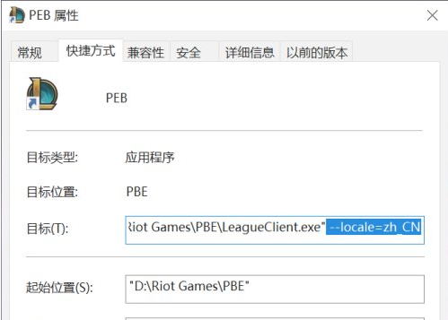 1、右键桌面美测试服属性,在目标路径最后添加“空格”--locale=zh_CN