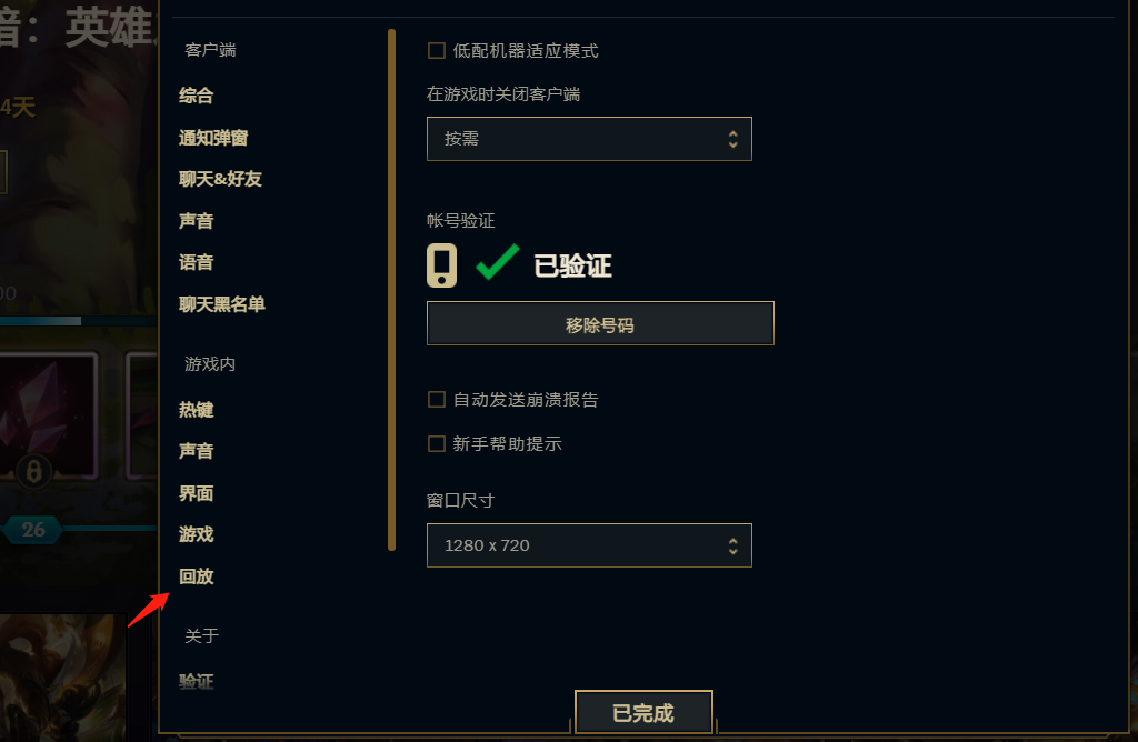 1、首先打开LOL客户端,然后点右上角的设置按钮,在设置窗口,找到(回放)。