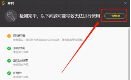 3、检测过后然后再点击“一键修复”,即可修复你所需要修复的游戏目标。