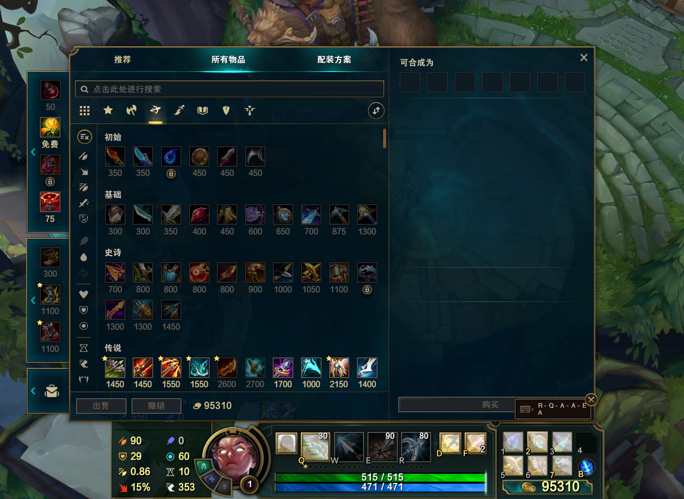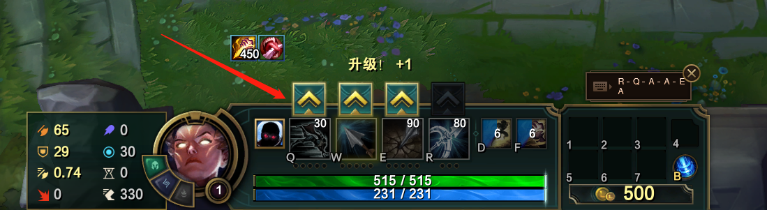 2、升级技能: Ctrl Q/W/E/R