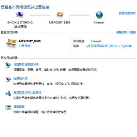 2.在查看网络活动选项下面,点击我们当前连接的网络。进行网络设置。