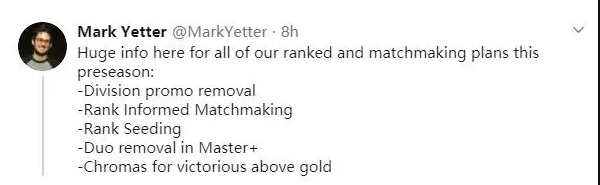 此外设计师mark在推特公布了S11季前赛的改动计划。