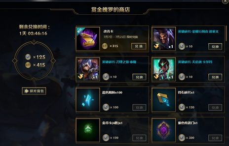 玩家可以用魄罗赏金在好运魄罗的商店中兑换大家期待已久的英雄联盟改名卡和英雄皮肤,召唤师图标,金币卡等奖励。