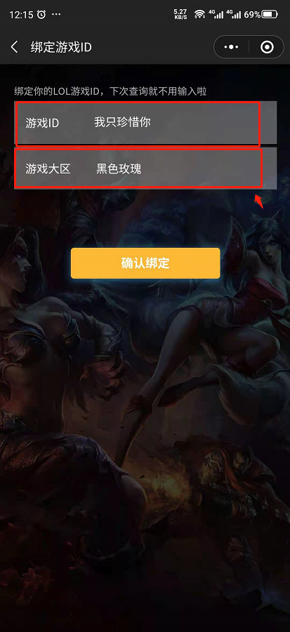 5.然后选择大区,然后输入自己的游戏id,点击【点击查询】