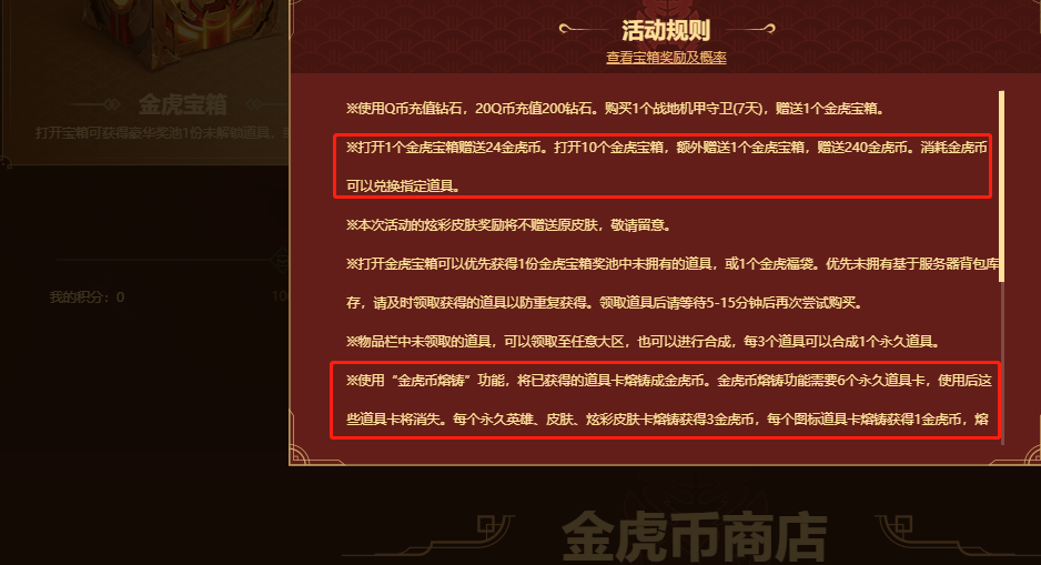 lol金虎币怎么获得? 2023-08-02 08:42:20 英雄联盟打开一个金虎宝箱赠送24金虎币,打开十个金虎宝箱额外赠送一个金虎宝箱,赠送240金虎币,还可以通过“金虎币熔铸”将已获得的道具卡熔铸成金虎币。