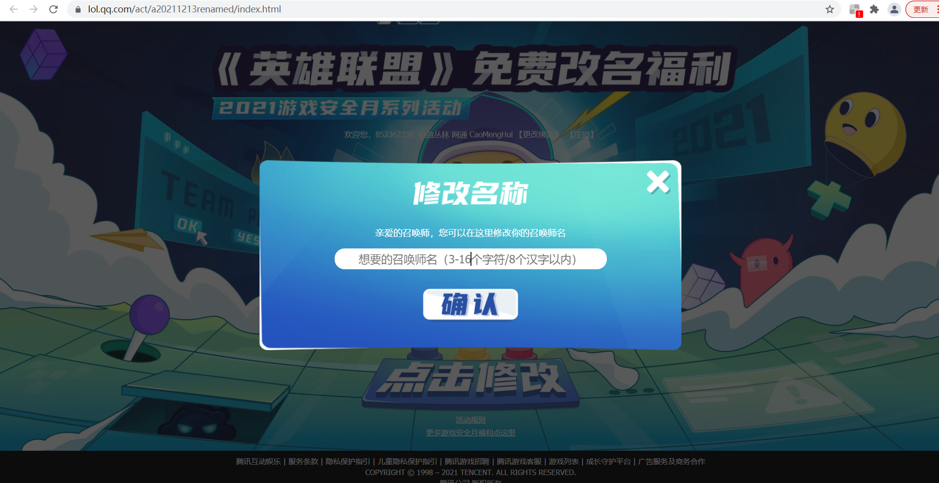 从英雄联盟官网进入活动页面后,登录账号绑定大区即可进行改名了。