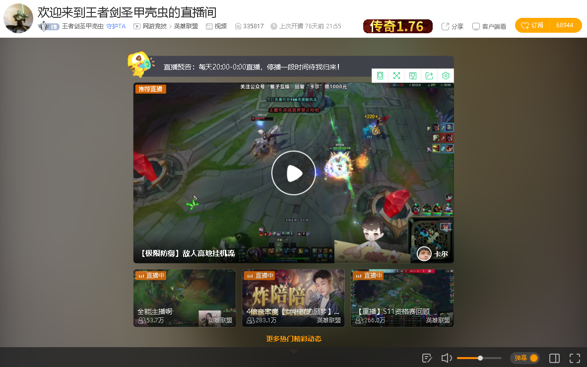 lol甲壳虫在哪直播? 2023-08-07 23:25:02 英雄联盟lol甲壳虫一般在虎牙直播,甲壳虫直播时间不固定,一般是随缘直播的。如果对他的直播感兴趣的话,可以关注一下他,主播上线之后应该会有提醒。