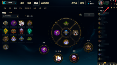 2、在藏品界面,选择表情,在这里可以看到已拥有的表情,和设置表情的轮盘,将自己喜欢的表情放到轮盘里。