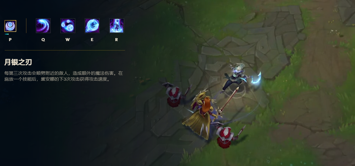LOL皎月是《英雄联盟》中的英雄角色皎月女神黛安娜。英雄定位刺客、法师,多走中单,打野。