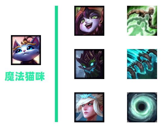 A级:科加斯、丽桑卓、阿木木、玛尔扎哈、魔腾、斯卡纳、泰达米尔、阿狸、莫德凯撒、永恩