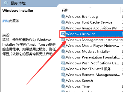六、进入服务列表,找到Windows Installer服务双击进入,如下图所示