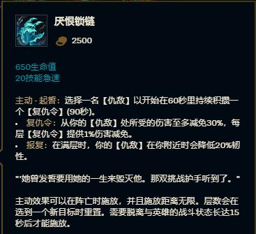 英雄联盟新装备厌恨锁链到来,很多玩家还不知道怎么使用这个件装备,下面为大家讲解。