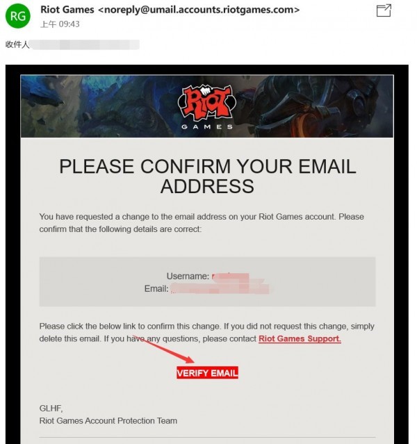 5.然后拳头公司会下发一个验证邮箱的邮件,如果找不到的话,可能会在你的垃圾箱里面。