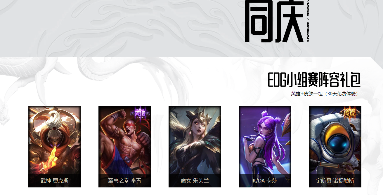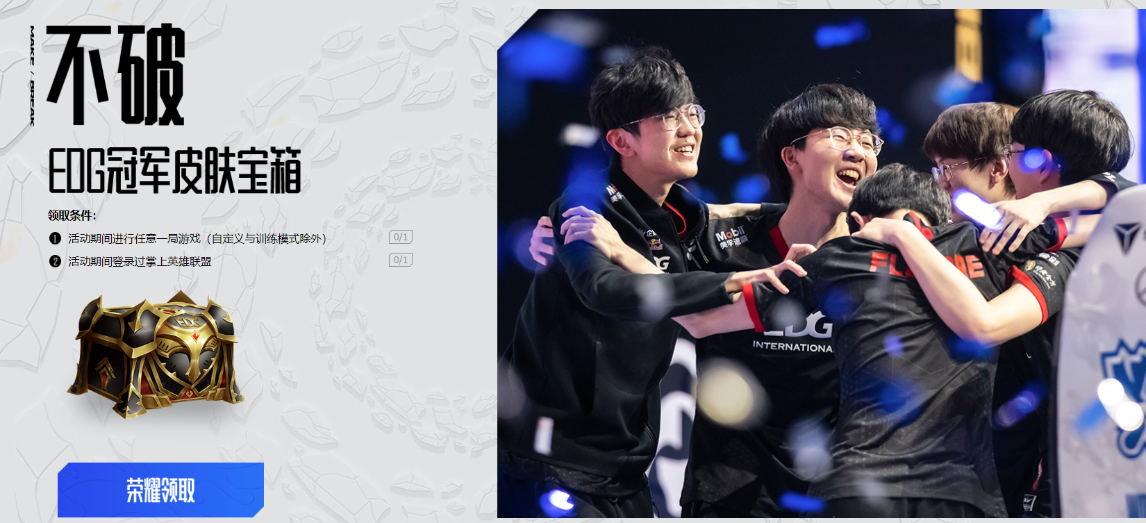 1.该活动为了庆祝EDG夺冠,广大玩家可以免费抽取英雄皮肤宝箱等众多游戏奖品
