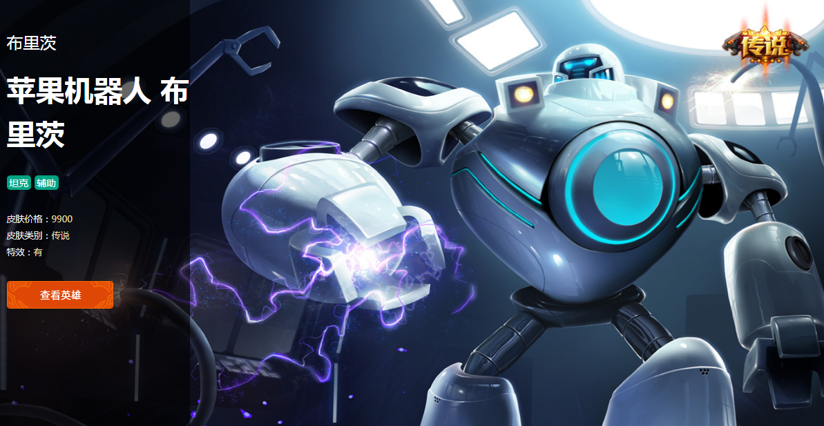 1.苹果机器人布里茨《英雄联盟》推出的一款人工智能风格的皮肤,目前售价9900点券折合人民币99元。