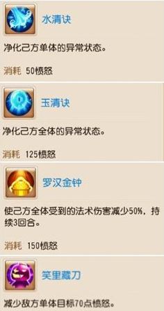 b、【水清】任务必备小特技,推荐第 1 件入手。愤怒消耗很少,做任务的时候会频繁使用,如果普陀比方寸快,效果更佳。pk还可以用来预判。