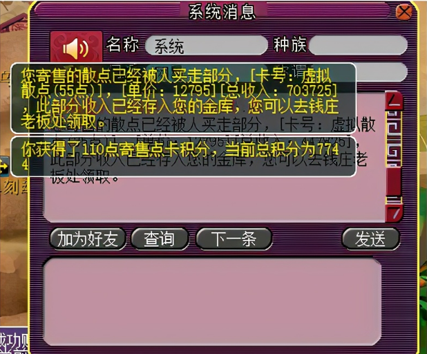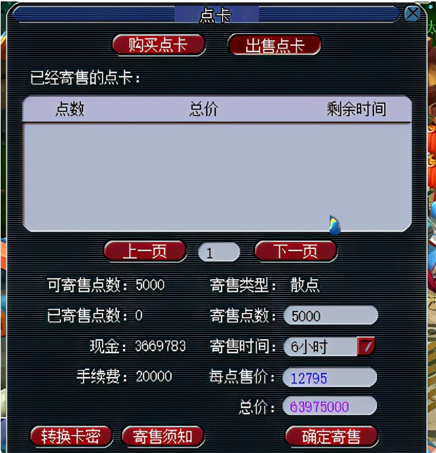 1、寄售点卡后,只要有人购买你点卡就会获得售卡积分。