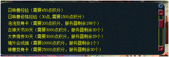 4、售卡积分兑换物品刷新时间每周一00:00:00。周日过后的12点整刷新(凌晨),如果是人少的区白天都会有库存的。人多的区就会在周一凌晨12点蹲点抢旗帜即可,每个角色每周限量抢购一个,服务器每周刷新数量30个。