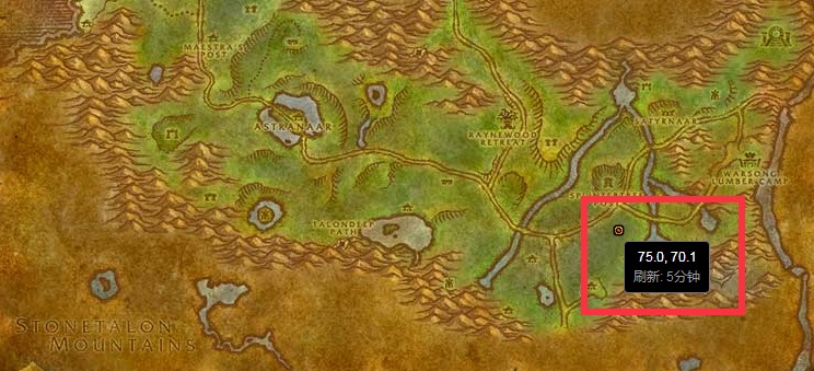 2、尖爪,尖爪的位置位于灰谷碎木哨岗南边的位置,具体的位置坐标为(75.0,70.1);