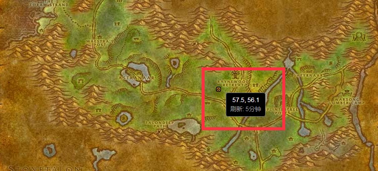 3、猎影,猎影的位置位于灰谷的林中树居的西南方,具体的位置坐标为(57.5,56.1)。