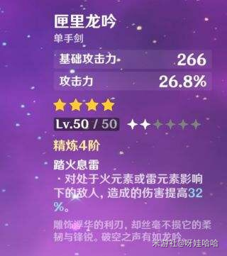 第三把推荐武器,便是平民之王,匣里龙吟,攻击力加成和武器技能,很好的保证了刻晴的面板高度和稳定的输出